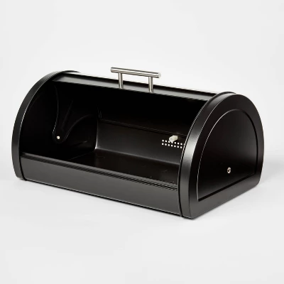Bring sleek style to your kitchen counter with this Metal Breadbox from Threshold™. This bread storage box is a must-have addition to your kitchen essentials. Made from metal, it features a powder-coated finish for sleek style and lasting use. The large capacity bin lets you keep bread loaves, rolls and baked goods fresh and tasty for longer, while the classic roll-up lid opening with a chrome handle won’t occupy any extra space when opened and allows for easy access. Plus, it’s easy to spot clean.